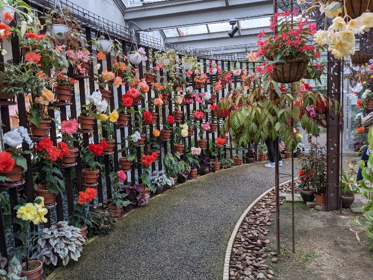 温室内の水槽というのか堀というのか・・・水に花を浮かべてあるのもお洒落!(^_-)-☆
