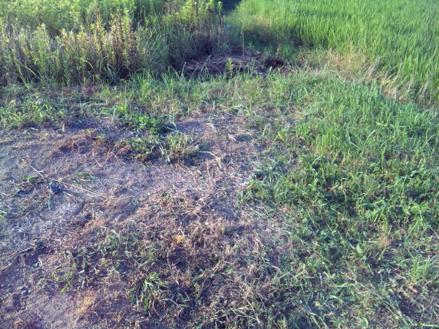 後ろの方が草がボウボウに伸びているみたいな感じですが、そこは墓地に隣接する田んぼです。