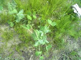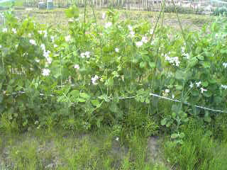 「おしゃべり日記帳」の3月23日の記事に書いていた杖を立てた後の絹サヤエンドウ。