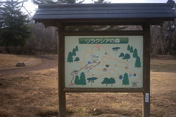 この写真は峰山高原の遊歩道の入口みたいな場所にある案内の看板です。