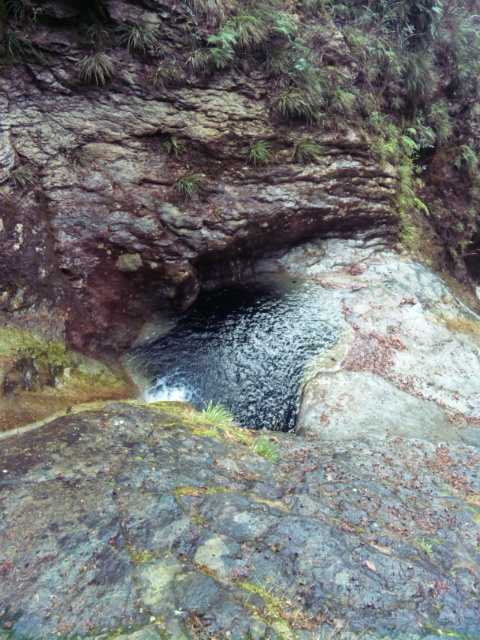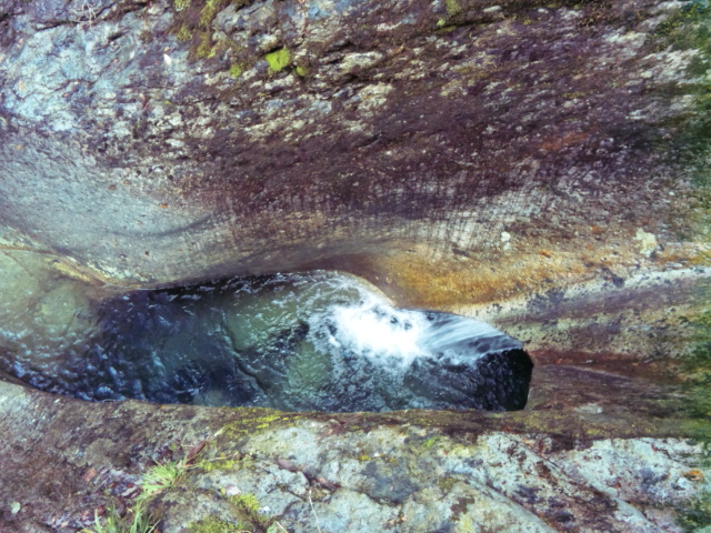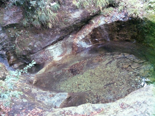 滝つぼは遊歩道の横にあるのですが、一応は階段の手すりみたいに金属のチェーンがかけられていて落ちない様にはなってますね。
