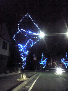 これは西脇市内の住宅街にある街路樹に施されたイルミネーション。