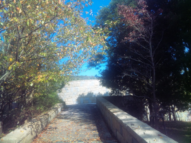 ルネッサンス広場にある展望台(写真の一番奥の石垣)へ向かう並木道。