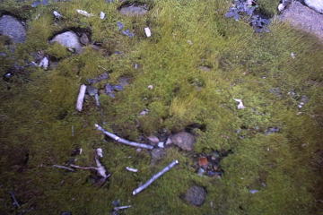 今度は地面を見ると一面にコケが生えている場所が~!