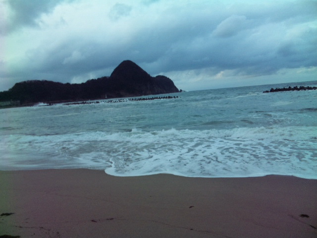 旅館にチェックインしてから散策で外出して悪天候の砂浜を歩いてました。^^;