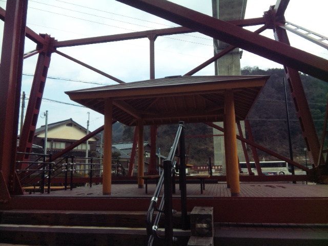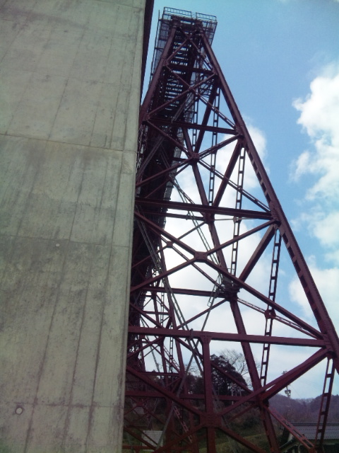 それで、古い鉄橋の一部(これが事故があった鉄橋なんだけど)が残されていて、そこへ上がれるようになっているんです。