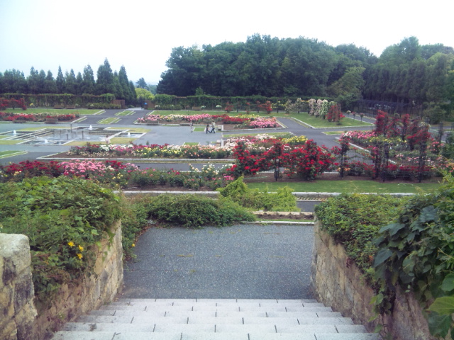 写真では分かり難いけど、実物を見ると、このばしょから「バラ園」を眺めるのも素敵です。^o^