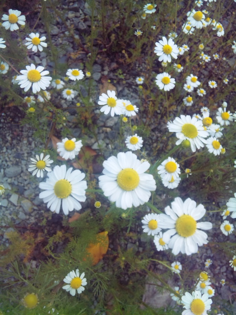 今年も我が家の裏庭に雑草化したカモミールが大量に生えました!^^;;