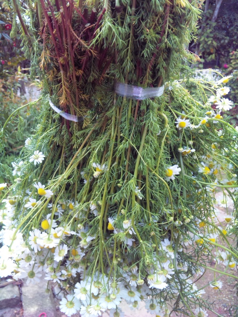 束ねて洗ってつるしてドライフラワーにしてカモミールティーにしてがぶ飲みします。^o^