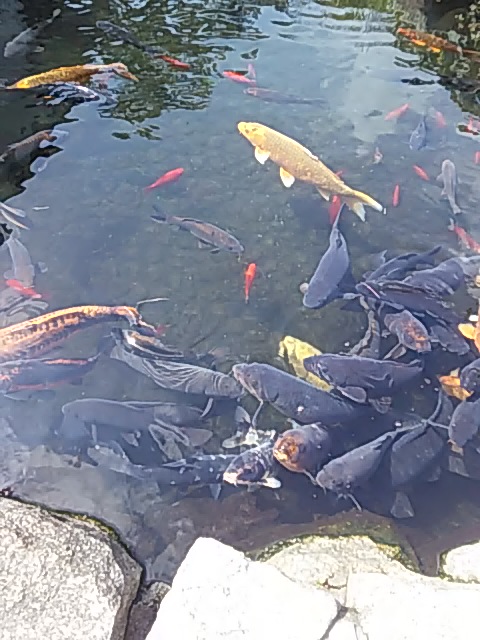 因みに写真は売店横の堀ですが、大量のコイが泳いでます。