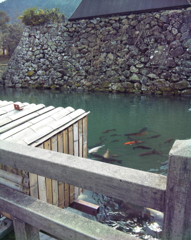 辰鼓櫓の下は鯉が沢山泳いでる堀があります。^o^