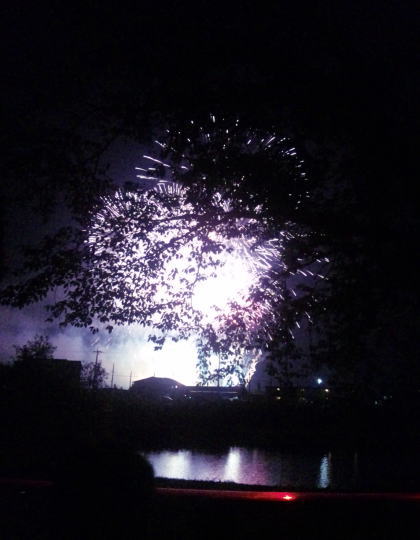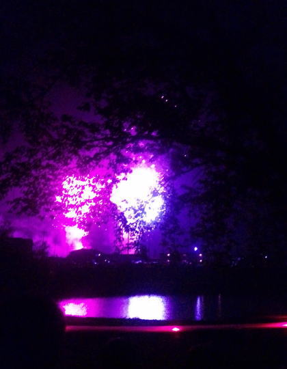 ここの花火を見た時は公園の木の枝が邪魔で見えにくかった。^^;