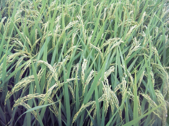 所々でポツポツとヒエやわけの分からんエンドウ豆の出来損ないみたいな草が生えてた。