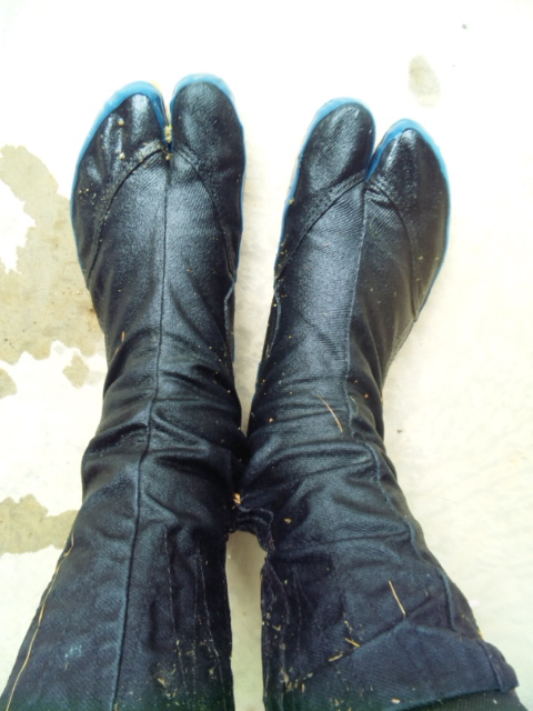 これだったら水が染み込むから靴下は履いてられないけど、歩く時はブーツより楽。^o^