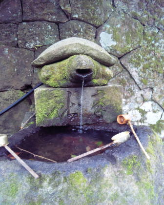 神に仕える動物なのか分からないけど、その動物の石像の口から手を清める水が流れる様になっている神社をタマに見かけます。