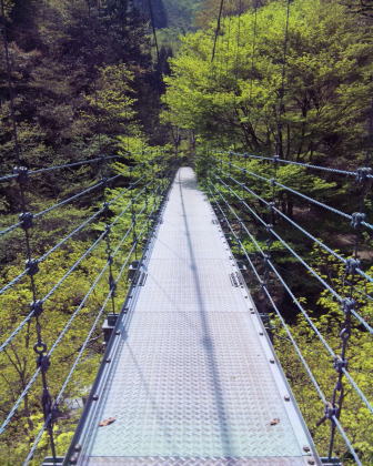 このキツイ階段を延々とテクテク登ったら奥に再び吊橋があります。