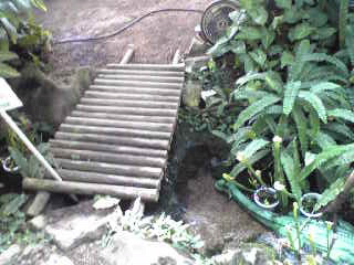 内部は熱帯性の植物(?)が沢山で、温室の上の方にある入り口から下ったらこんな橋がありました。^o^