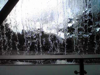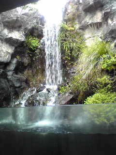 だけど、左の写真の滝は回廊の天井部位の高さだったか、天井部より低いけど天井部に近い高さ辺りから滝が流れて、その滝の水が下の水槽に貯まっていました。^o^