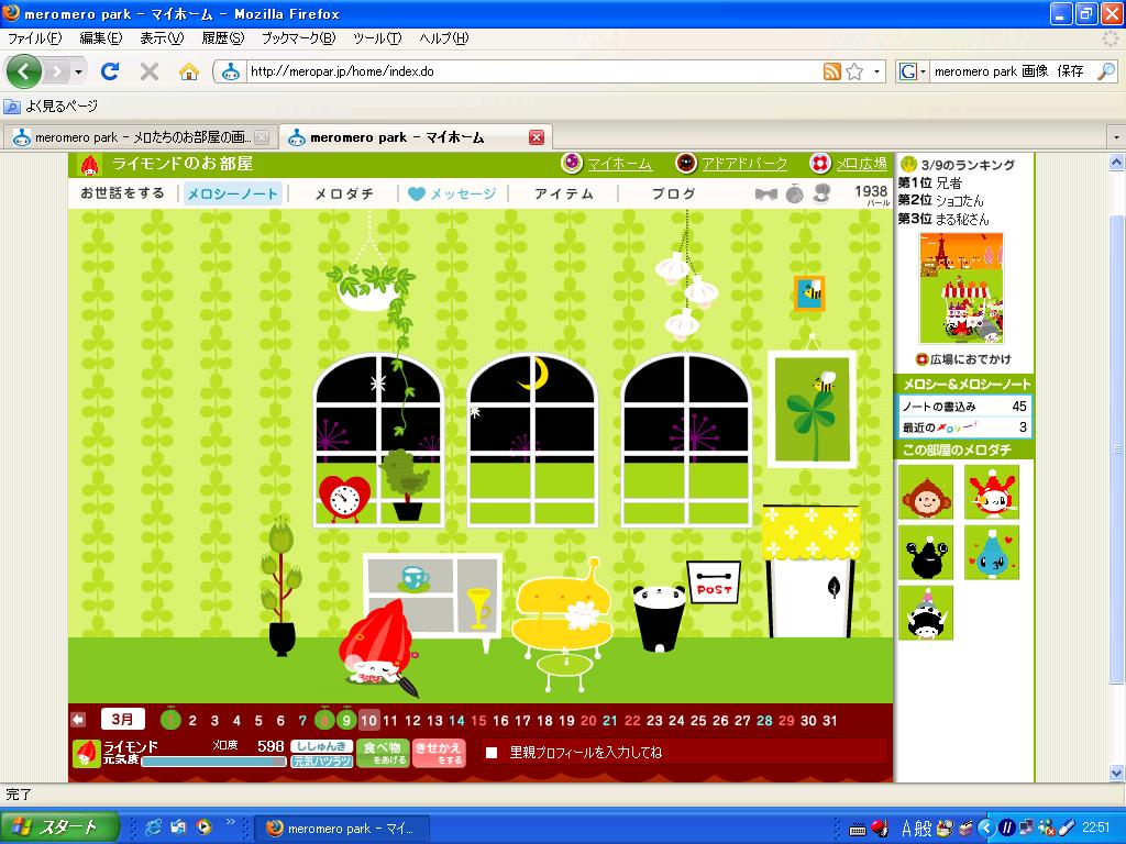 これは当Blogサイドメニューに「meromero park」というペットがいるのですが、このペットのマイホームの画像取り込みに成功しました。