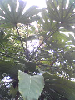 このヤツデは我が家とは言え・・・実は木は隣接する今は空き家になっている場所にあって、その葉っぱが我が家の庭の方に伸びてきているのです。^_^;;