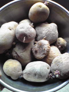 6月に収穫したジャガイモだから、もう既に芽が出ています。^_^;