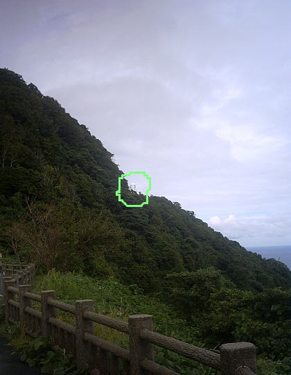 拡大写真もイマイチ灯台が分かり難いので灯台のある部分を丸印で囲みました。^_^;