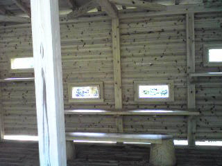 この2枚の写真は池のほとりにある観察小屋とその内部。