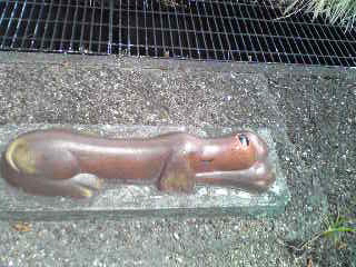 各駐車スペースの車止めがこの様な動物を模った陶芸作品になっていました。