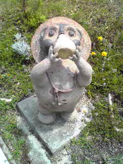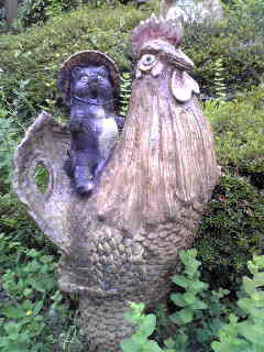 この鶏に乗ったタヌキの像も見てたら楽しくなりそうです!
