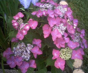 青のアジサイ、今年は色のつき方がイマイチ。