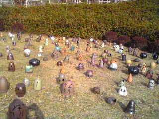 沢山の陶器の写真ですが、これは立杭焼きの作品で灯籠と言うのか・・・中に蝋燭とかを入れる様になっているみたいに見えました。