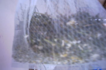 しかし、過去に長期保存してたら乾燥剤を入れているにも関わらずカビが生えた経験があったので、余った分はこの様にしてネットに入れて再び干しています。